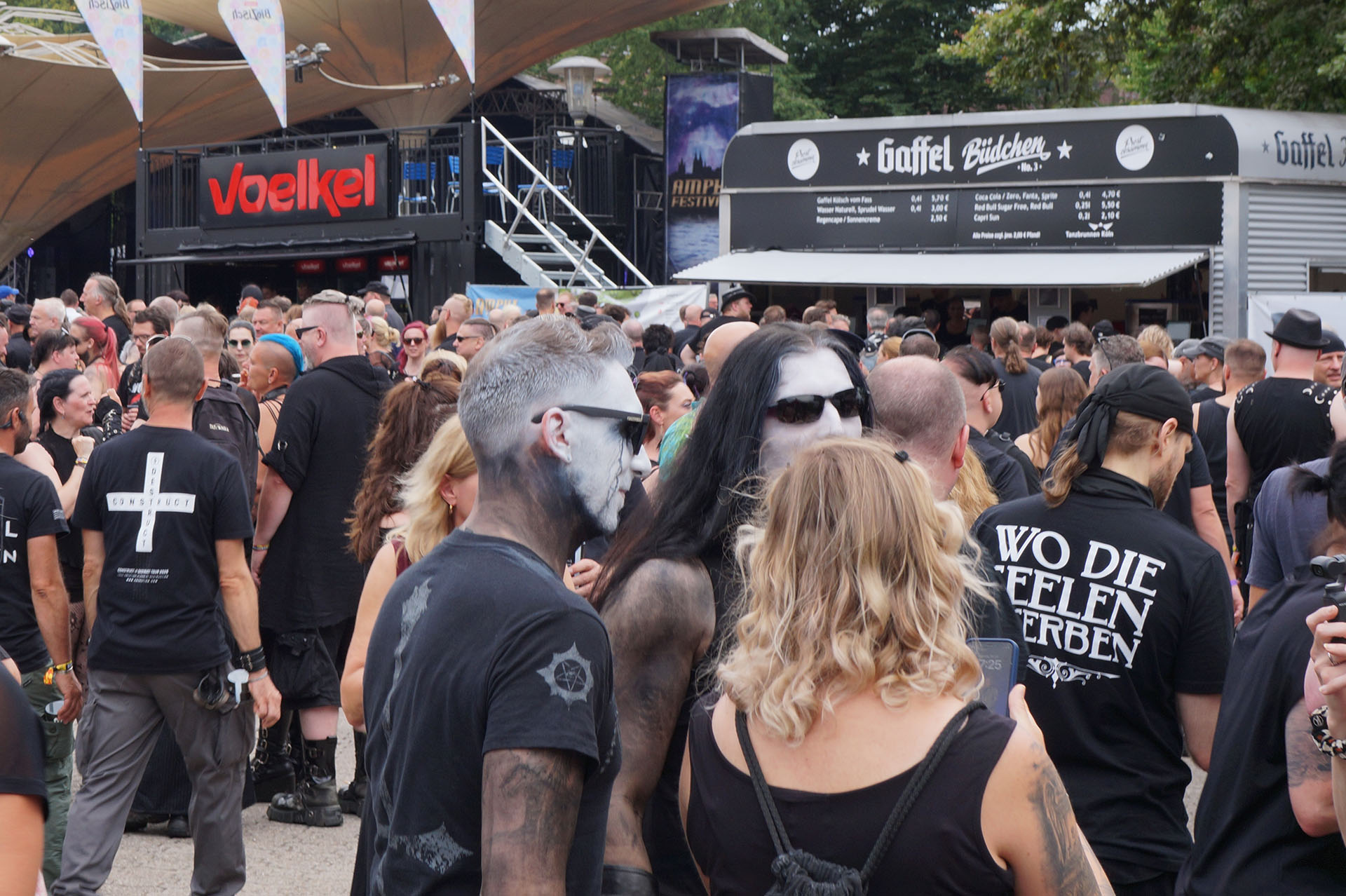 Amphi festival je i ove godine oduševio izborom dućana s alternativnom robom, dok je gastronomska ponuda bila nešto slabija u odnosu na prošlu godinu. Najisplativije piće na festivalu bio je Met. Program je započinjao već u podne, a bendovi su nastupali sve do ponoći.