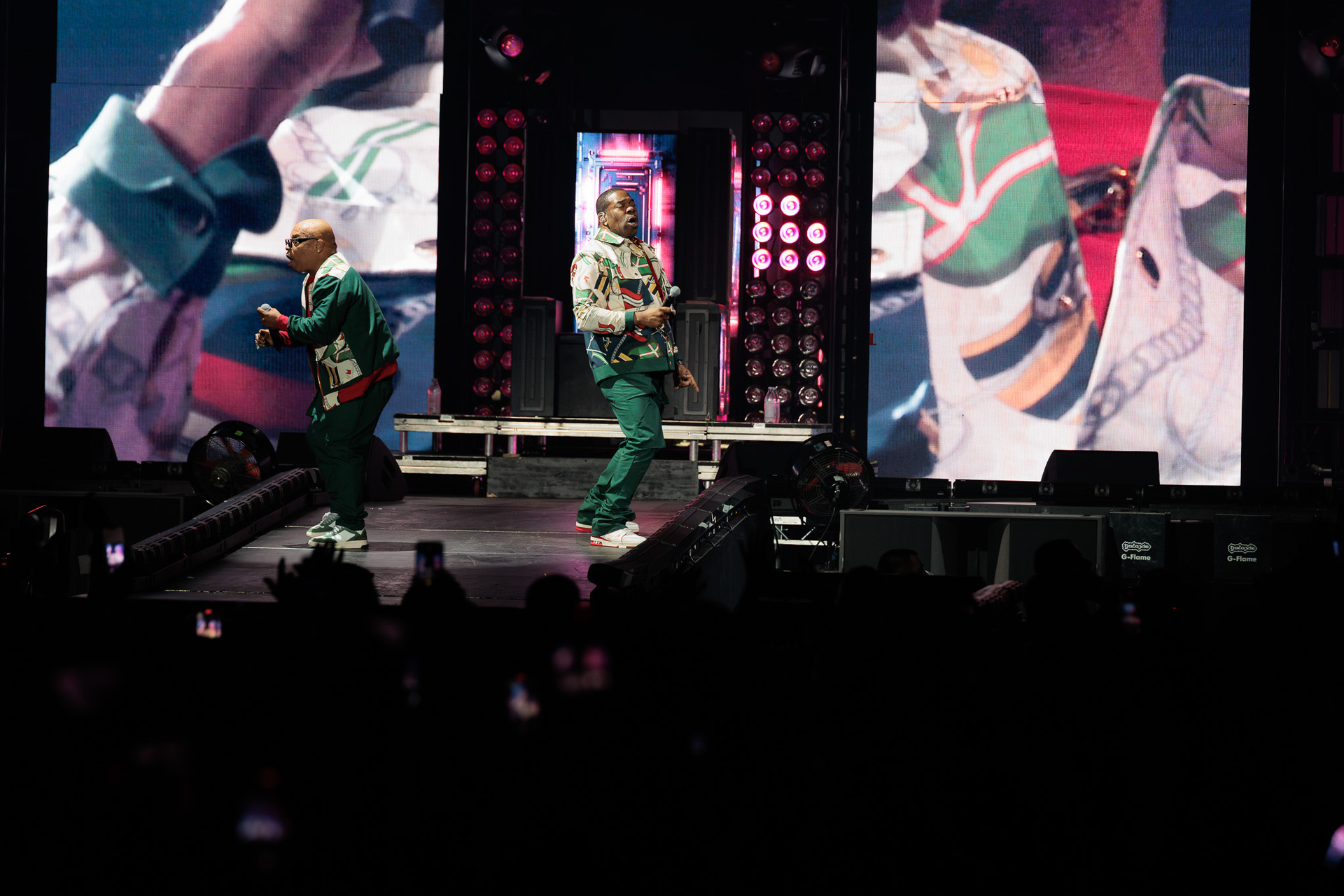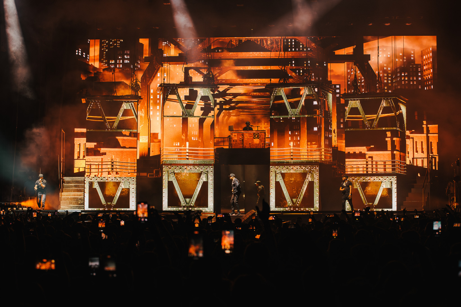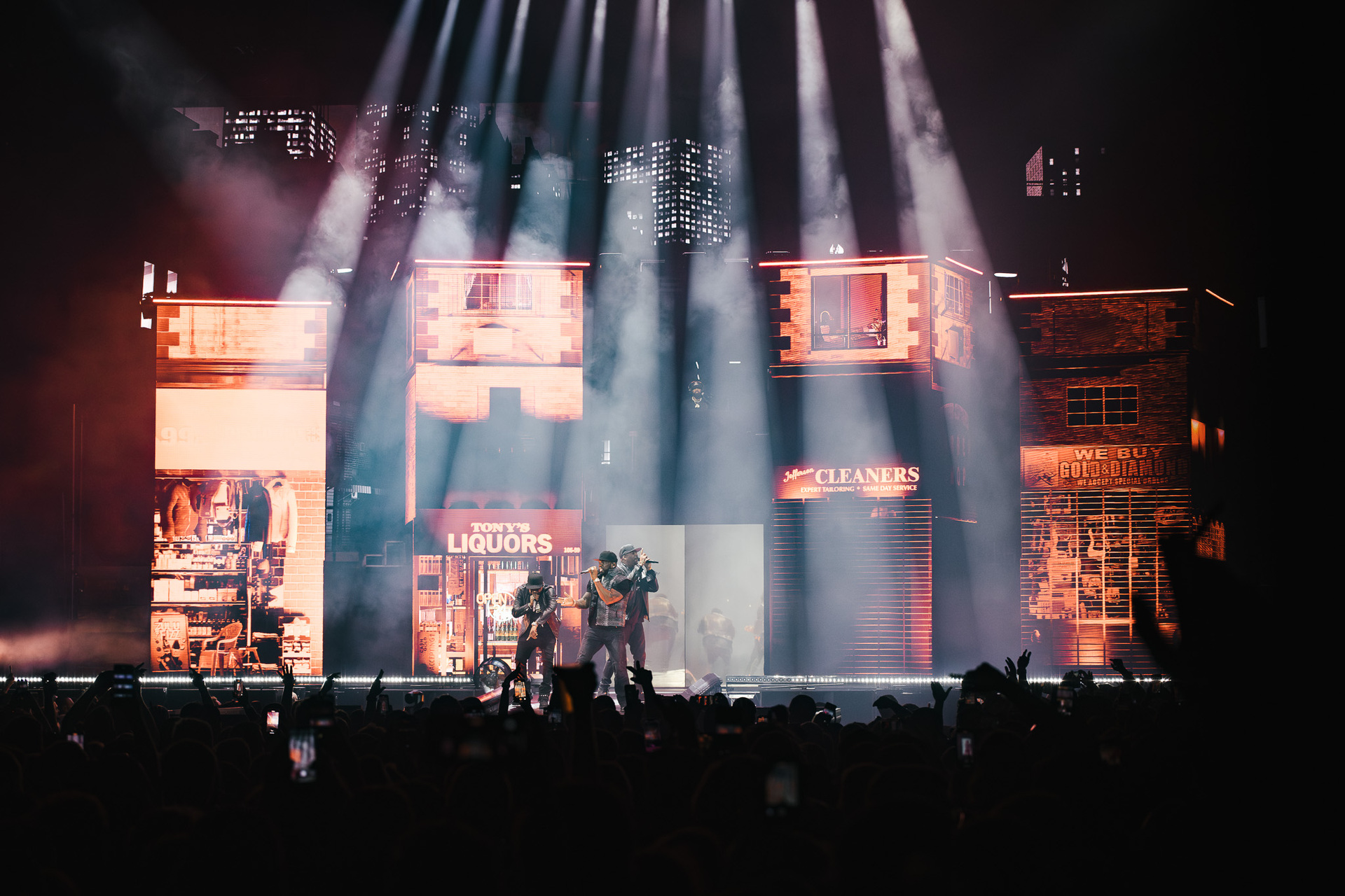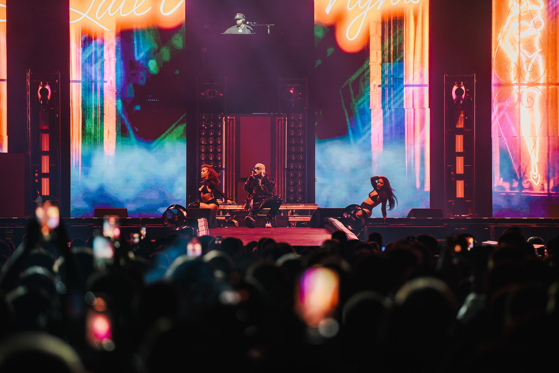 Još 45 minuta pauze i napokon je došlo vrijeme za zvijezdu večeri, a tijekom nastupa postalo je jasno čemu služi čitava svita kamiona koji su se poslagali po parkingu ispred Arene. Produkcija je bila na vrhunskoj razini, postav pozornice mijenjao se iz pjesme u pjesmu, outfiti gotovo istom brzinom, a prateće plesačice s uistinu zavidnim vještinama su izvirale iz svih kutova i dopunjavale spektakl. Na pozornici je bio i bend, koji je bio smješten na povišenim platformama dok je 50 Cent većinu nastupa nonšalantno šetao od jednog do drugog kraja stage-a.