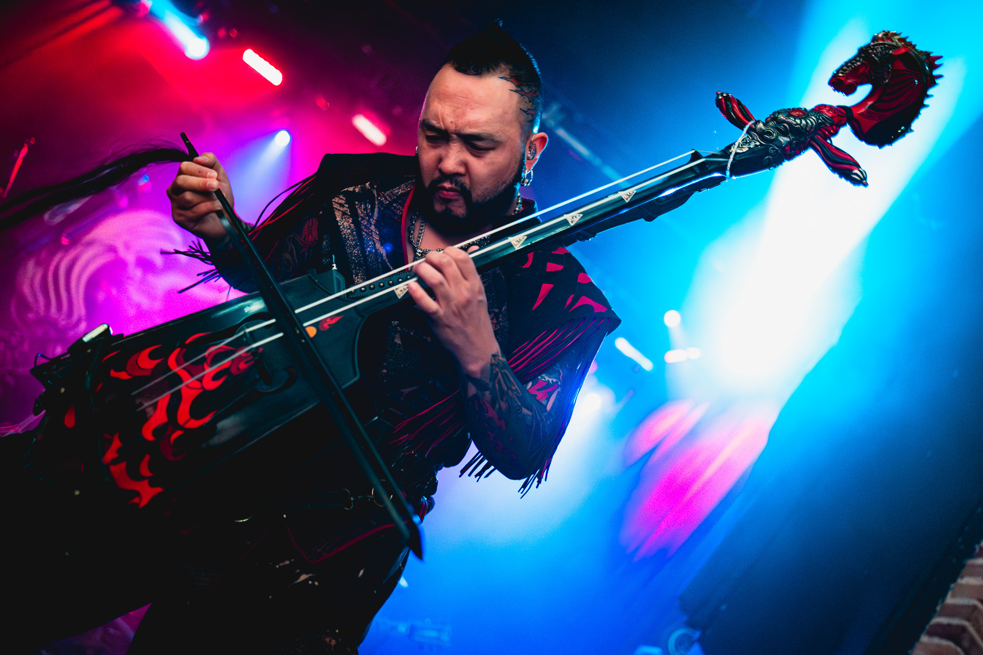 Bilo je sinoć doduše i malo slow dijelova, kada sav taj ratnički zanos malo padne u tempu, ali i te neke melankolične dionice imaju u svom nastavku gradaciju kojom pjesme uspijevaju završiti u klimaksu tako da sve opet bude bučno, nabrijano i primodijalno. Svaki od glazbenika sa scene nepogrešivo isporučuje svoju dozu arhetipskog divljaka s dalekog istoka od kojeg bi pobjegao i sam Bela IV. Konje i strijele su zamijenili motori i gitare, ali imidž je prepoznatljivo taj. U više navrata se povlačila paralela kao da pred sobom imamo nekog suvremenog mongolskog Thompsona. Možda i oni pjevaju o nekom vjetru koji se zaustaviti neće da ga nešto pitaju? Mongolijo sunce moje, jedna duša a nas dvoje. Ili osmero, koliko ih je već sviralo na bini.